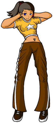 今ではすっかりお馴染み、桃園で義姉妹の契り交わしたポップンダンサー3姉妹の末妹です。字(あざな)は翼徳。 酒と戦いをこよなく愛し、一丈八尺の蛇矛をふるって大立ち回りを演ずる。粗野にして勇猛ではあるが、どこか憎めない一面もある。 パワーは強いが、足が遅くリーチが短い。スキの少ないジャンプ投げと、強力な連続技を効果的に使っていけば、足の遅さを十分カバーできる。必殺技の粉砕拳と、スクリューパイルドライバーは攻撃力がとても高い。