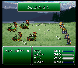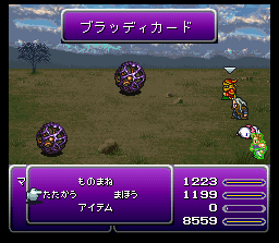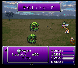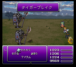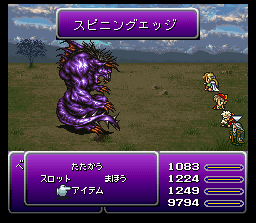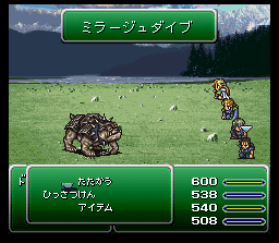 キャラが瀕死の時に「たたかう」すると1/16の確率で隠し技が発動。 ただしキャラクターにバニシュやぶんしんがかかっていると、発動しないので注意。 ![]() 敵一体に防御無視の大ダメージ。 ![]() 敵一体に防御無視の大ダメージ。 ![]() 敵一体に防御無視の大ダメージ。 ![]() 敵一体に防御無視の大ダメージ。カッコイイ。 ![]() 敵一体に防御無視の大ダメージ。 ![]() 敵一体に防御無視の大ダメージ。すごくカッコイイ。 ![]() 敵一体に防御無視の大ダメージ。 ![]() 敵一体に防御無視の大ダメージ。なんか普通。感動は薄い。 ![]() 敵一体を即死。 ![]() 敵一体を即死。 ![]() 敵一体に防御無視の大ダメージ。 ![]() 敵一体に防御無視の大ダメージ。FF5でのゴゴをほうふつとさせる。 | ||